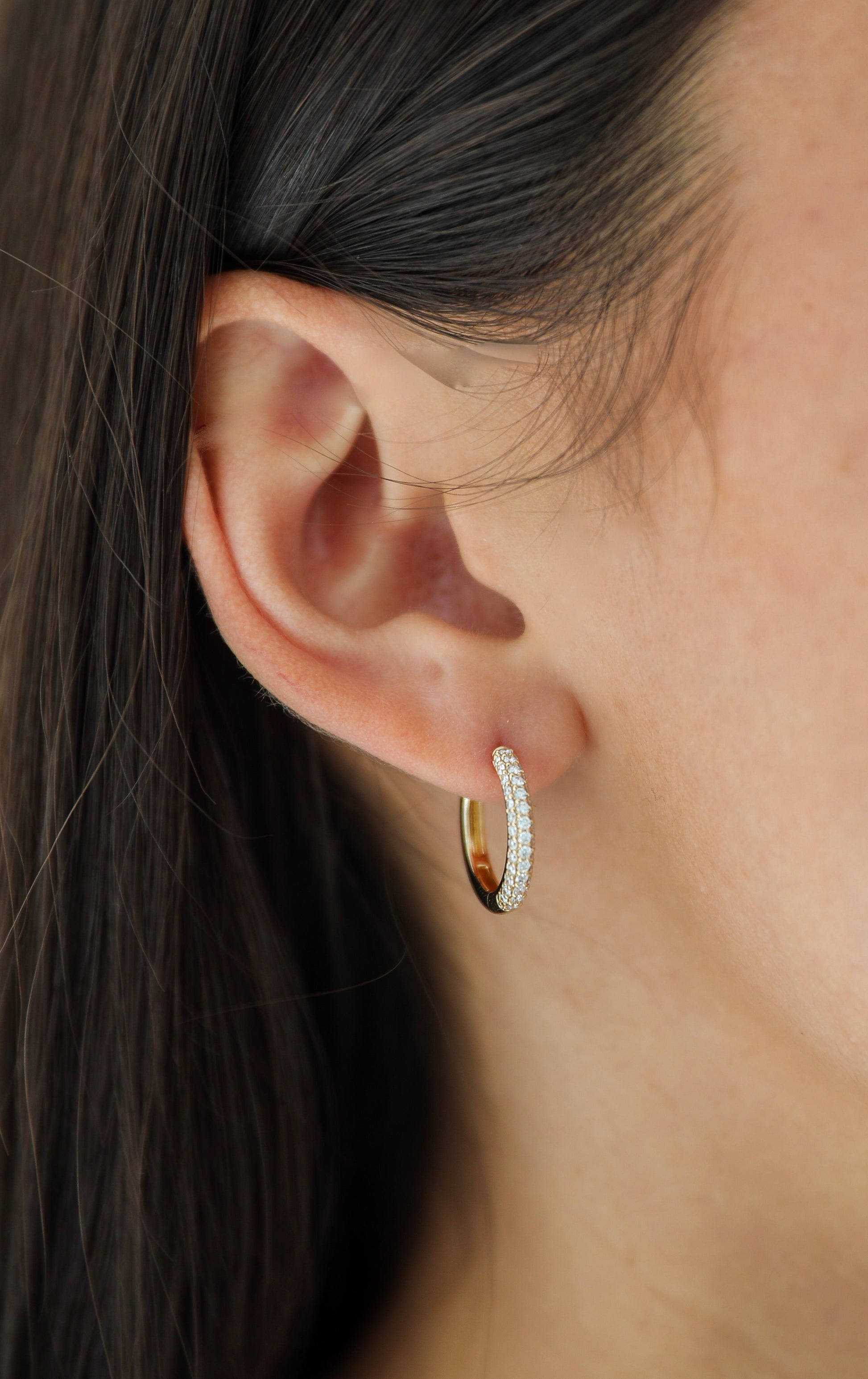 14karat yellow gold earring with 80 round lab grown diamonds (.58 total carat weight).