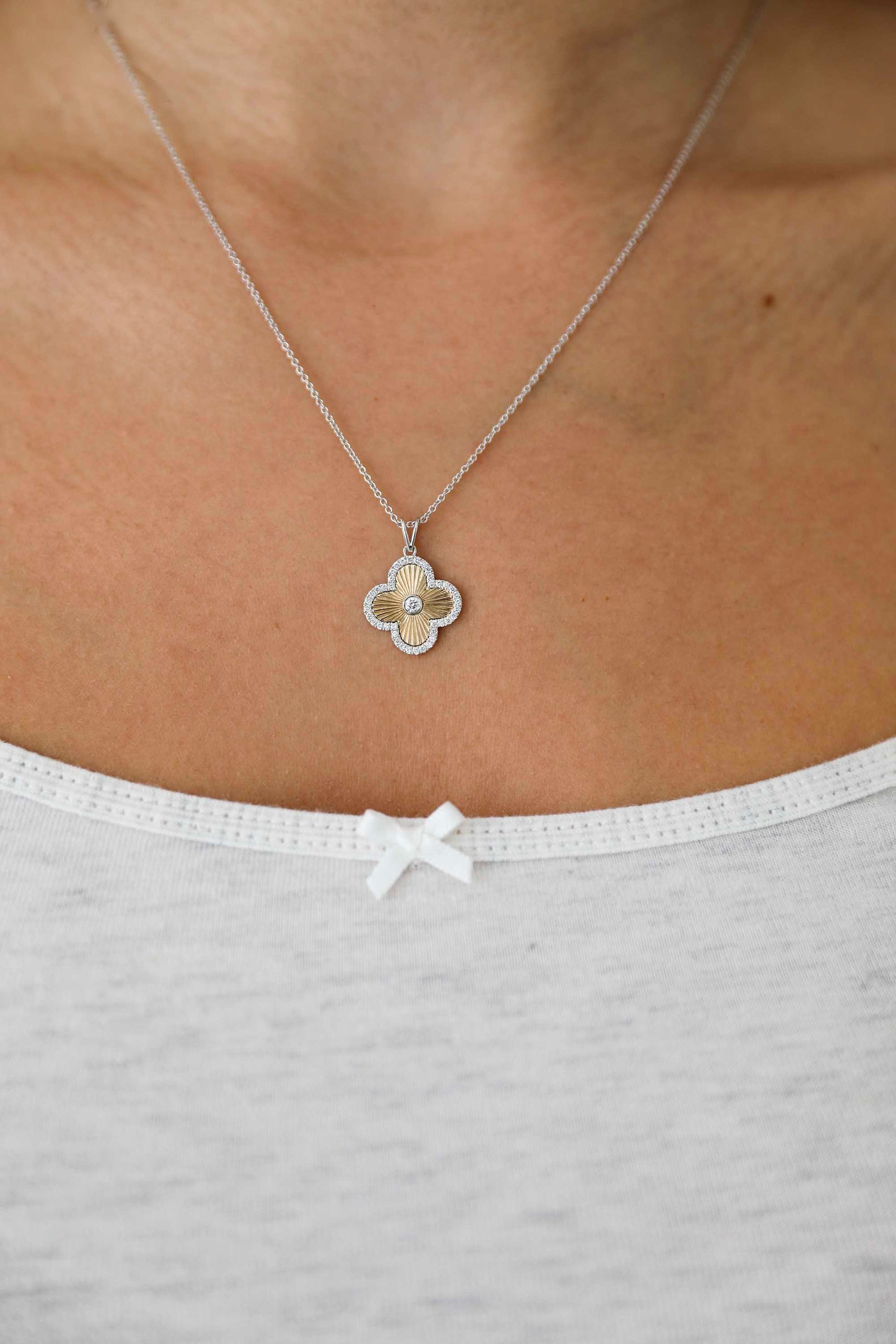 14karat white and yellow gold pendant with 41 round lab grown diamonds (.24 total carat weight).