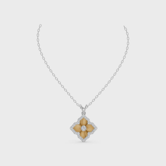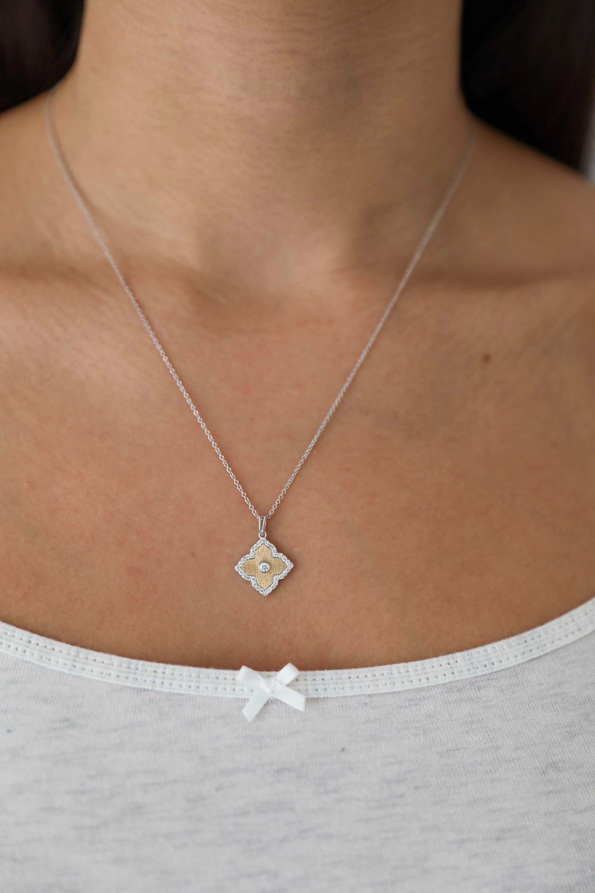 14karat white and yellow gold pendant with 33 round lab grown diamonds (.25 total carat weight).
