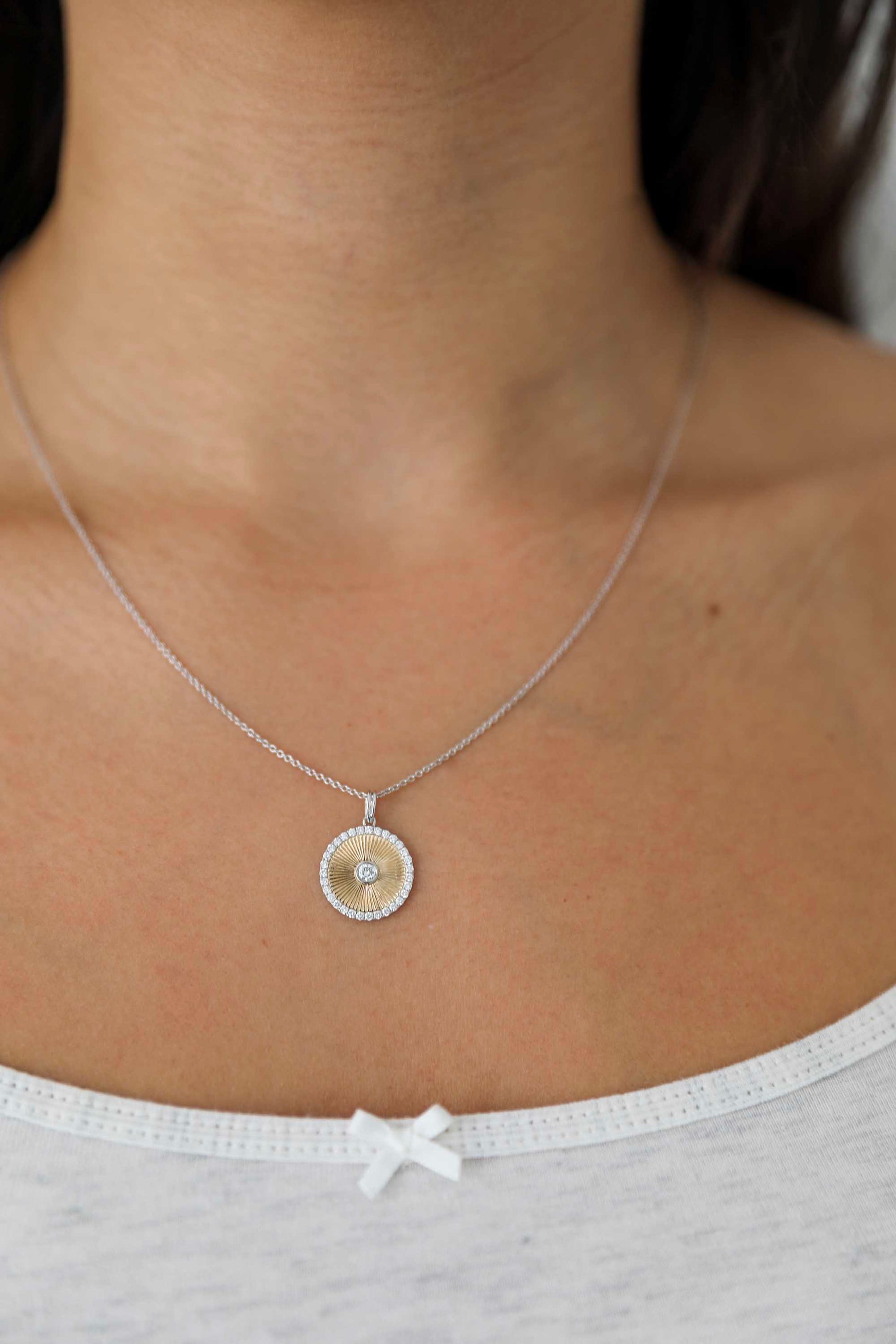 14karat white and yellow gold pendant with 32 round lab grown diamonds (.34 total carat weight).