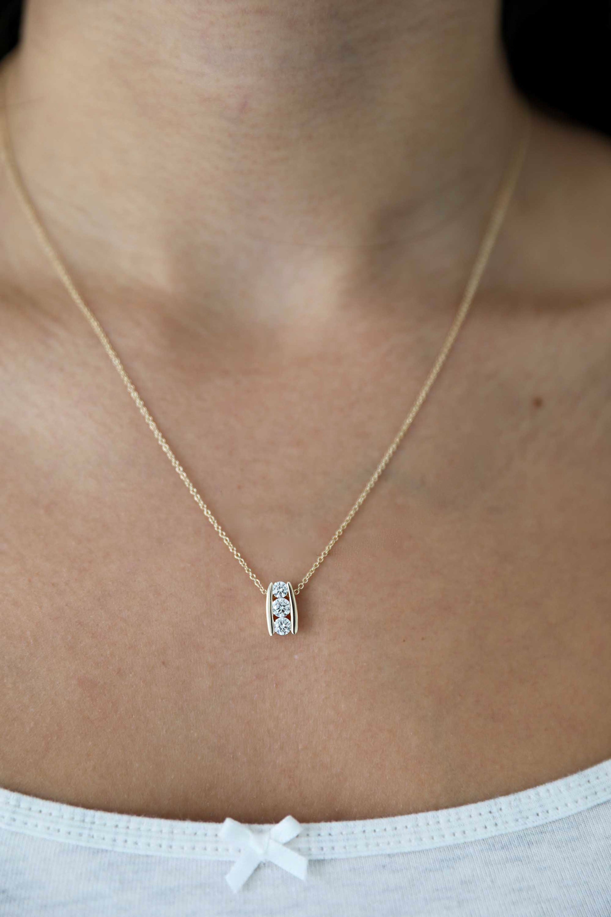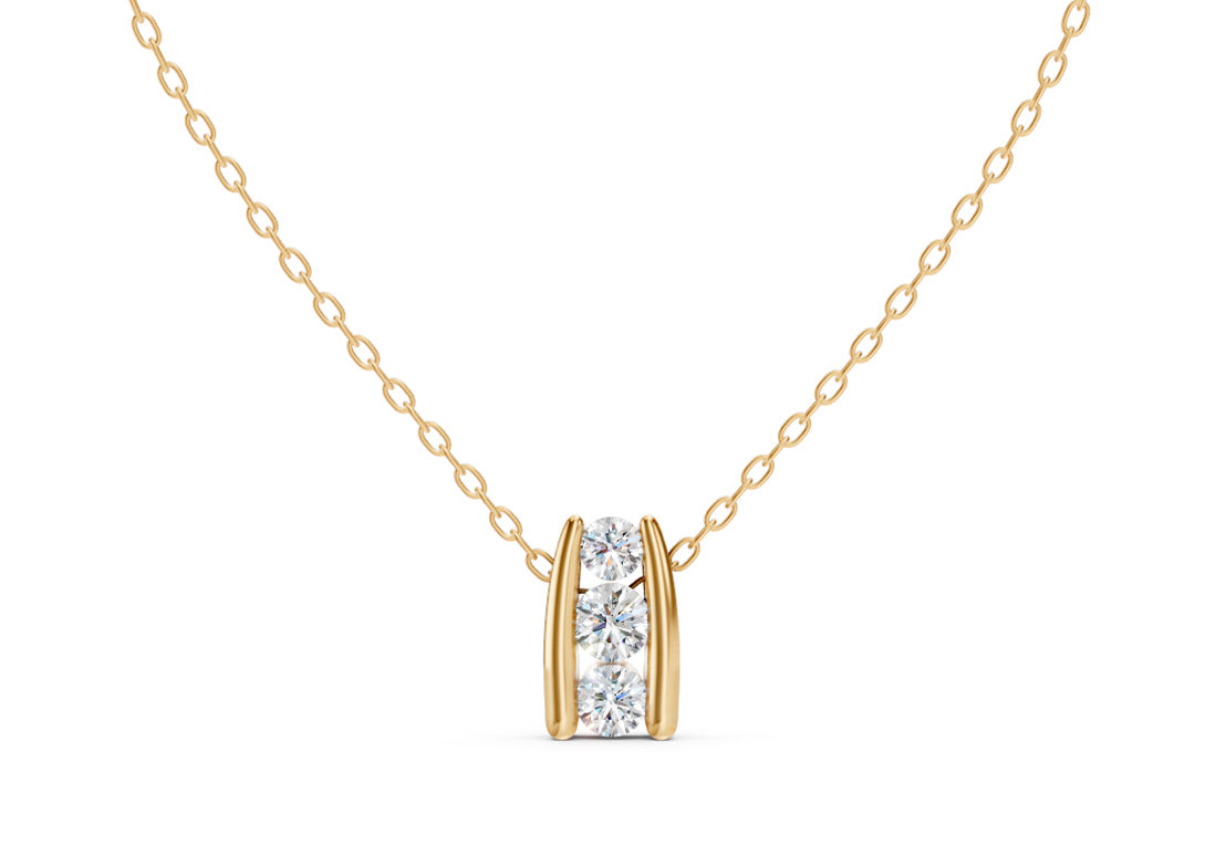 14karat yellow gold pendant with 3 round lab grown diamonds (.48 total carat weight).