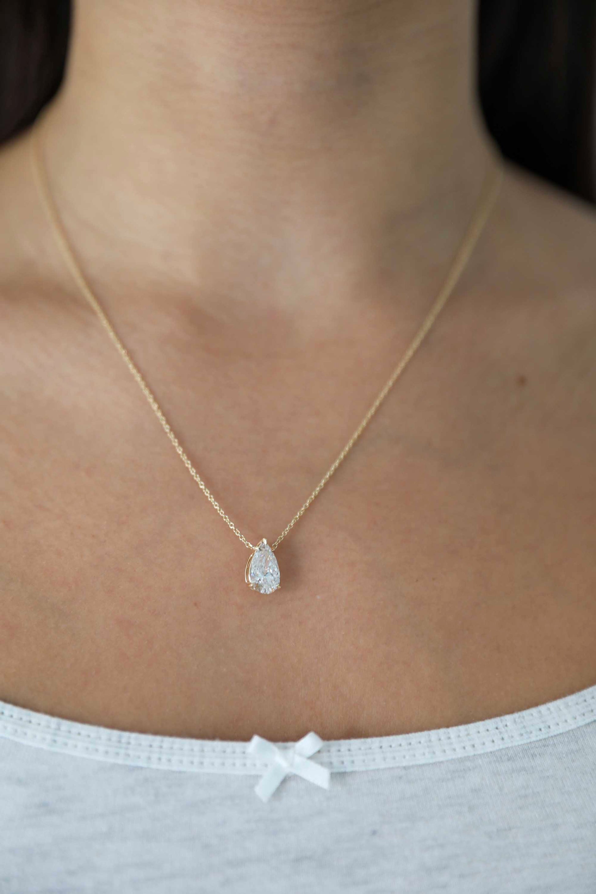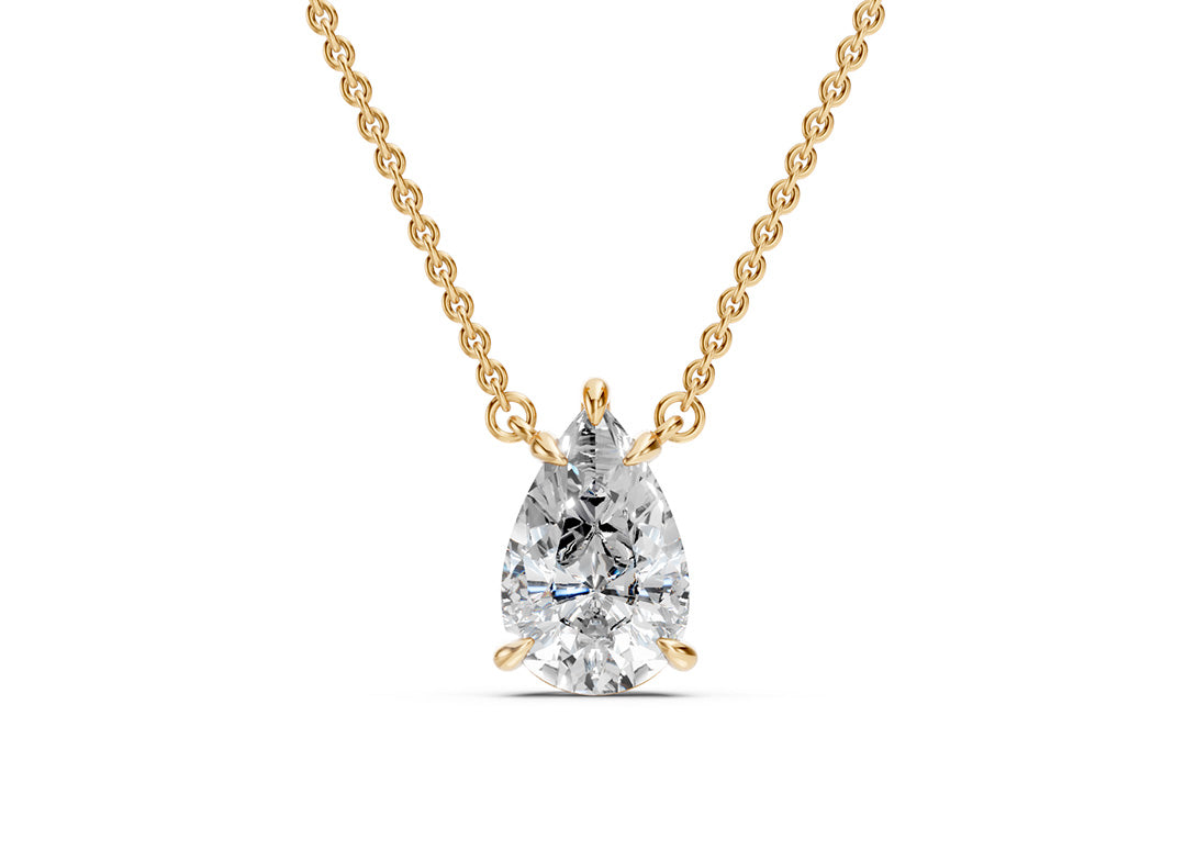 14karat yellow gold pendant with 1 pear shaped lab grown diamond (2.06 total carat weight).