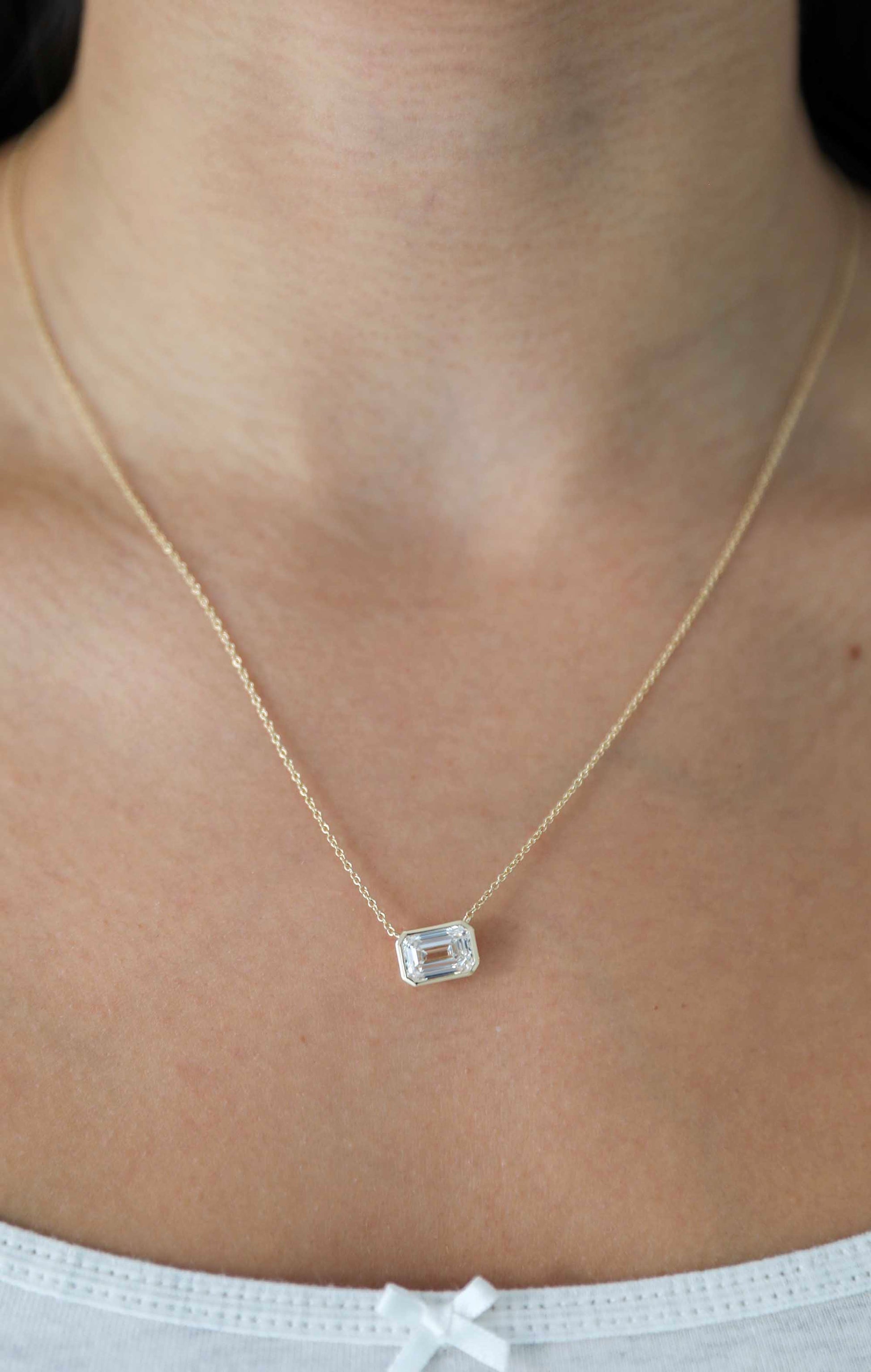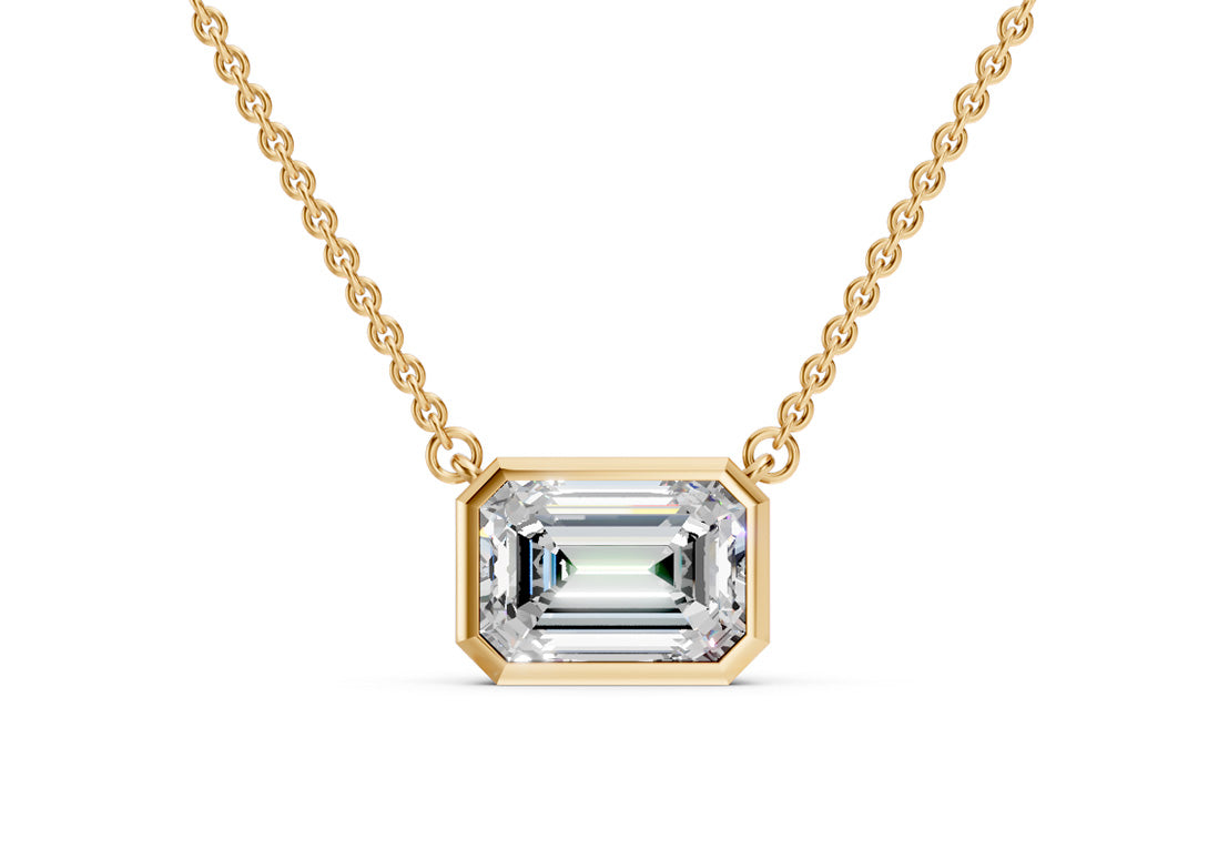 14karat yellow gold pendant with 1 emerald cut lab grown diamond (2.54 total carat weight).